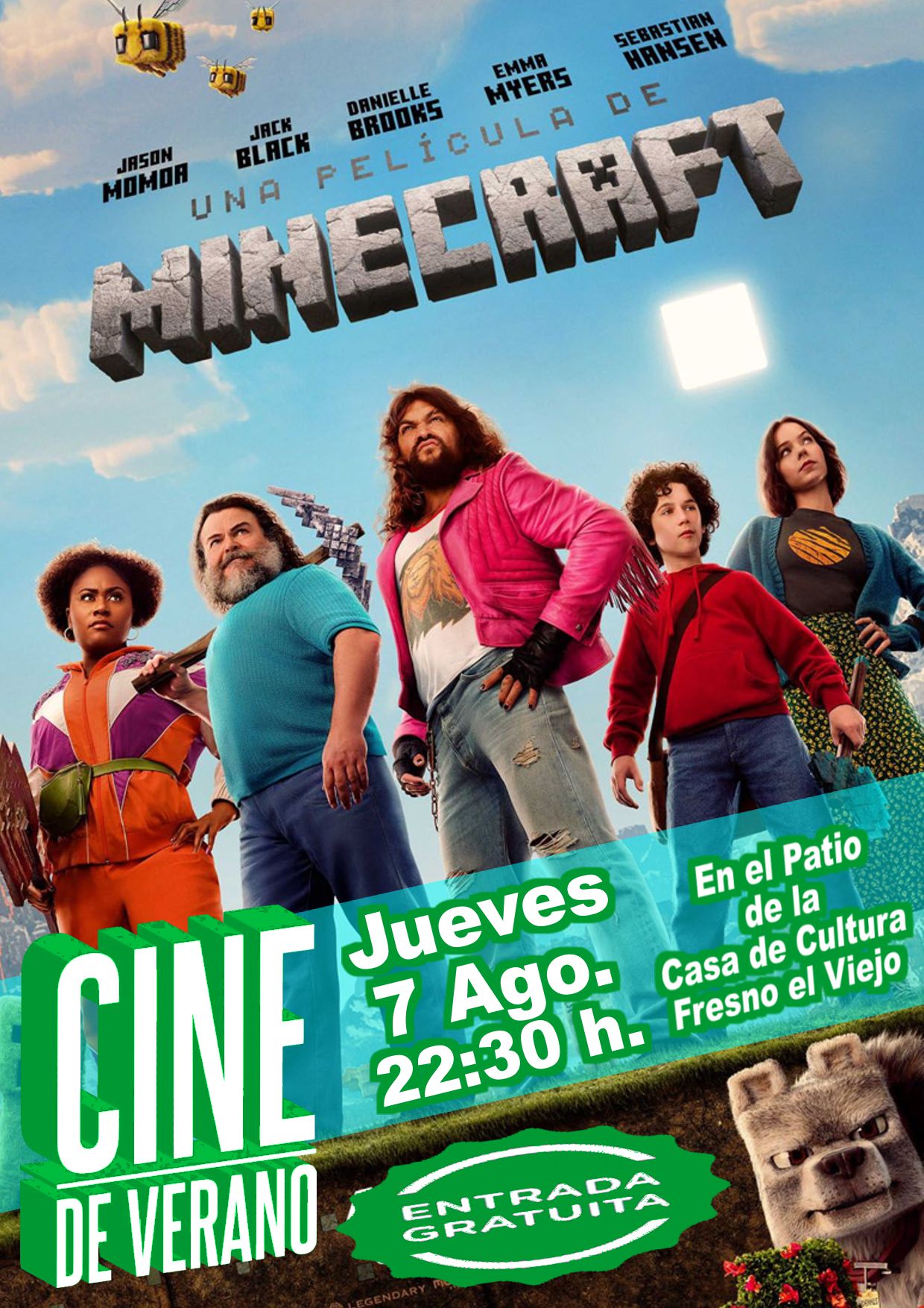 Este jueves 7 de agosto a las 22:30 h, ven al Patio de la Casa de Cultura y disfruta de Minecraft: La Película 🪓⛏️🐝