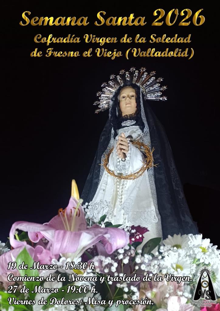 El cartel de la Cofradía de la Virgen de la Soledad, que ilustra la profunda devoción de los fresneros hacia la Virgen.